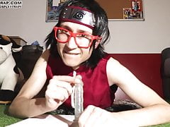 Twink femboy Sasha Earth enjoys rough anal play with sex toy for prostate massage