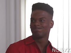 Blond black guy Debonair is used as a cum dump for hunh black hunks Adonis Courvertur