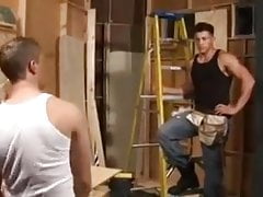 Hot action in the carpentry shop leads to a steamy threesome with the boss and a coworker