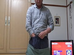 Naked Japanese guy manhood stroking
