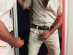 Intense self-pleasure session in front of the mirror ends with explosive finish!
