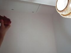 Femboy in chastity cage teases himself with a buttplug magic wand until he cums