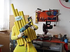 Inexperienced young German twink enjoys kinky solo session: pissing in condom, inflating it like a balloon, and jerking off for a satisfying release