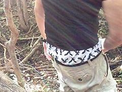Jon Arteen demonstrates his hard-on, pees piss outdoor, puts his white sneakers in mess