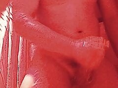 Nerd indulges in a private shower session, sensually explores his body with soapy fingers