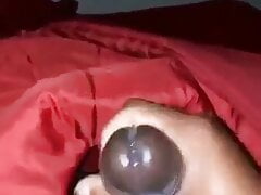 My friend wanking my small red cock 3