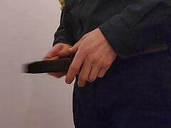 Gay-for-pay roomy caught privately wank off while warm boy shag himself under bathroom