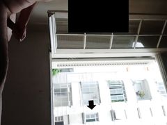 Austrian pervert Karuso decides to have a little risky fun and tug his cock on the window