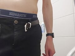 Highly ultra-kinky young boy puts his giant XXL sleek meatpipe out of his black cut-offs and fap
